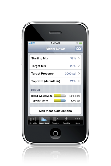 The dive plan has changed and you need to knock your mix down to enable a deeper dive profile. Use the Bleed Down tool to reduce the mix with a minimum of wasted O2.